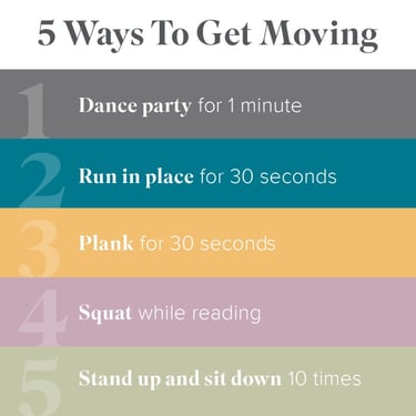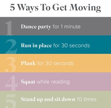 π Tina's Top Tips π Well-being is about total body, mind, and spirit wellness. I will be sharing some tips and tricks you can implement into your daily life to help provide the balance you are seeking. My top wellbeing tip (5 tips actually) for this week is to get up and get moving. β¨ Have a 1-minute dance party - gather the kids; gather some friends or just be by yourself. Throw on your favorite jam and get up and dance. This will get the blood pumping and is a great way to start the day! β¨ Run in place for 30 seconds... Like your dance party, running in place will get those knees and hips moving keeping you energized. β¨ Planks are 'core' to any routine (pun intended). Sitting all day weakens our core leading to back, neck, and shoulder strain. β¨ More help for those achy joints. When you find yourself reading a book - any book - do your joints and muscles a favor and squat for a bit. β¨ Sitting at a desk or couch surfing all day lends itself to more aches and pains... Regularly, hourly if you can, stand up and sit down 10 times. Stretch out your arms and shrug your shoulders. Give these exercises a go for the week and let me know how you feel.